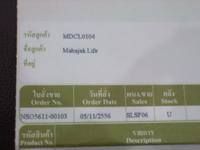 ใบเสร็จของ Mahajak เลขที่ NC56-001365 ลงวันที่ 5 พ.ย. 56
