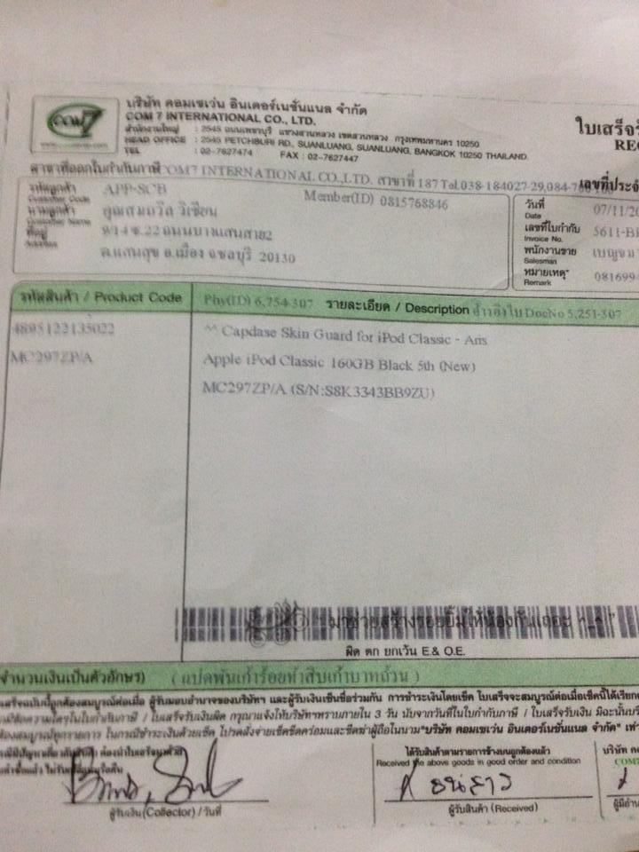 ซื้อมาตั้งแต่วันที่ 7/11/2556 จากตึกคอมชลบุรี ราคา 8,900 บาท 160gb สีดำ มีใบเสร็จพร้อม รับประกัน 1 ปี อุปกรณ์ครบกล่อง