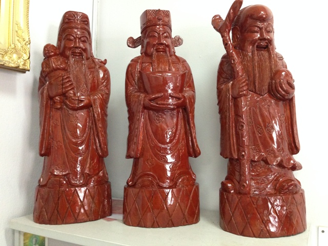 ฮก ลก ซิ่ว แกะสลักจากไม้สัก ลงเคลือบด้วยสีทาไม้สวยงาม ตัวองค์มีลอยแตกของไม้ตามอายุ สูงประมาณ 25 นิ้ว ราคาพิเศษ 7900 บาท ทั้งชุด (3 องค์)
