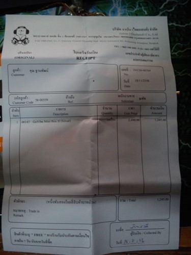 2.Amp Govibe mini box ตัวนี้เพิ่งเครมมาวันนี้เลย 18/11/56 ที่ร้านหมี นำตัวเก่าที่ซื้อจากในเวปนี้และเกิดอาการเสียไปเครมแต่หมดประกันแล้วเลยต้องเสียค่าเสียหายไปในราคา 50% เพื่อเอาตัวใหม่มา ของอุปกรณ์ครบ ประกันนับใหม่ไปอีก1ปี(เพราะเหมือนซื้อใหม่เลย)แกะมาลองใช้แล้วเก็บ ขอขายแบบแบ่งปัน 1,300 บาท