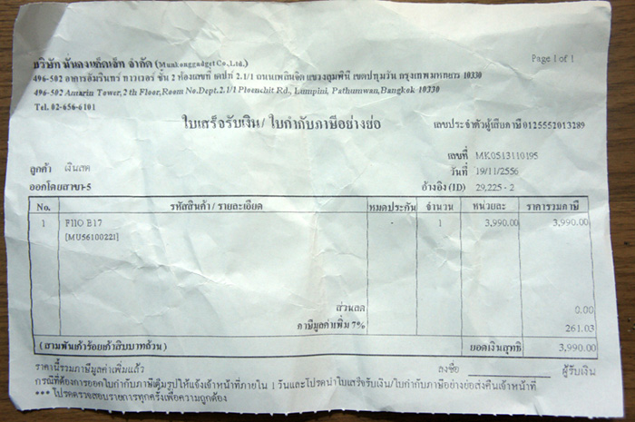 ใบเสร็จ ซื้อมาเมื่อวันที่ 19/11/56