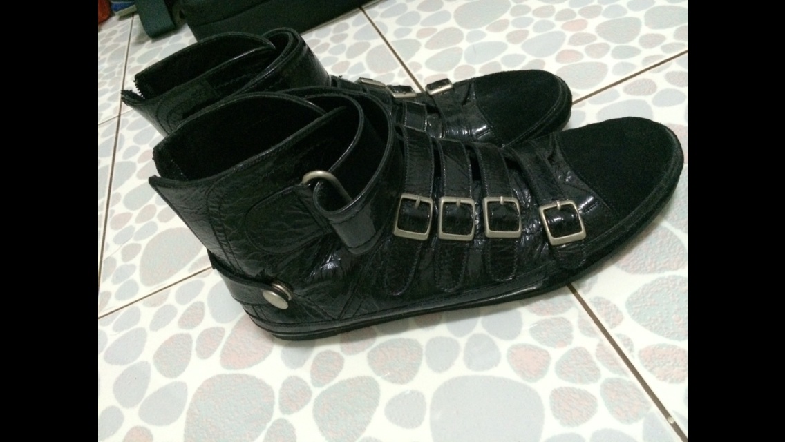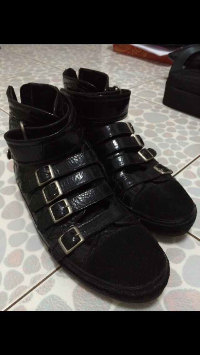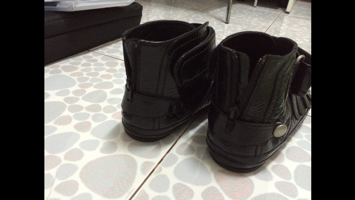 ด้านหน้าเปนหนังกลับ ตัวรองเท้าเป็นหนังแก้ว ถอดใส่ง่าย ตัวติดด้านบนสุดเปนตีนจิ้งจกคับ มีซิบด้านหลังคับ