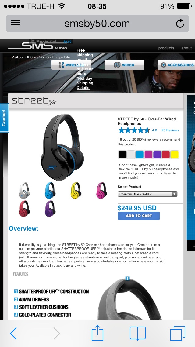 หูฟัง SMS Audio STREET by 50 cent - Over-Ear ( ของใหม่ )