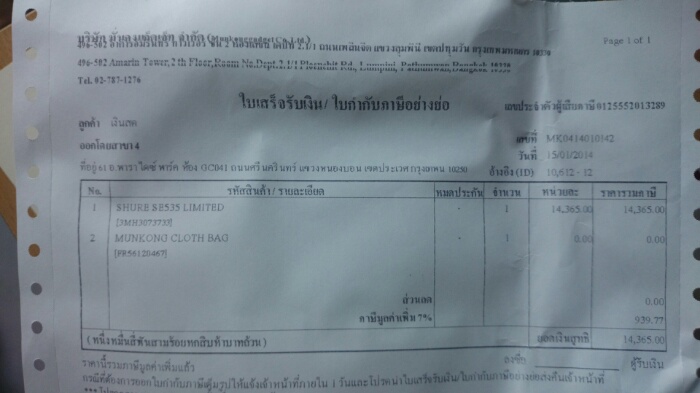 ขออนุญาตขายshure se535 ltd ประกันเหลือยาว