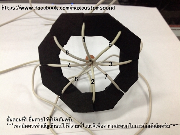 ขั้นตอนที่ 1 ครับควรทำสัญลักษณ์ไว้ที่สายเส้นที่ 1 และห้าเพื่อง่ายต่อการถักสายสะเต็ปต่อไป