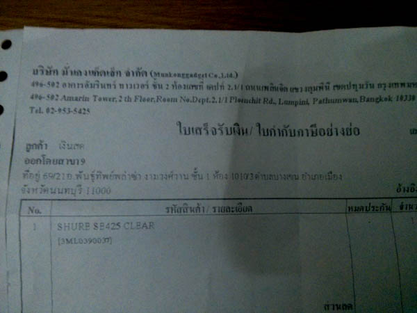 ขายครับ SE425 สีใส ซื้อมาเมื่อ 25/02/57 ที่ร้านมั่นคงครับ สาขางามวงศ์วาน