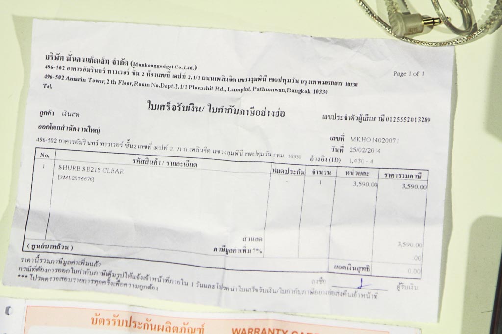 สิ่งที่จะได้รับ 1.กล่อง 2.จุกโฟม+ยางที่มากับแพคเกจ 3.ใบซื้อขายร้านมั่นคง 4.ใบประกันจากศูนย์ Shure