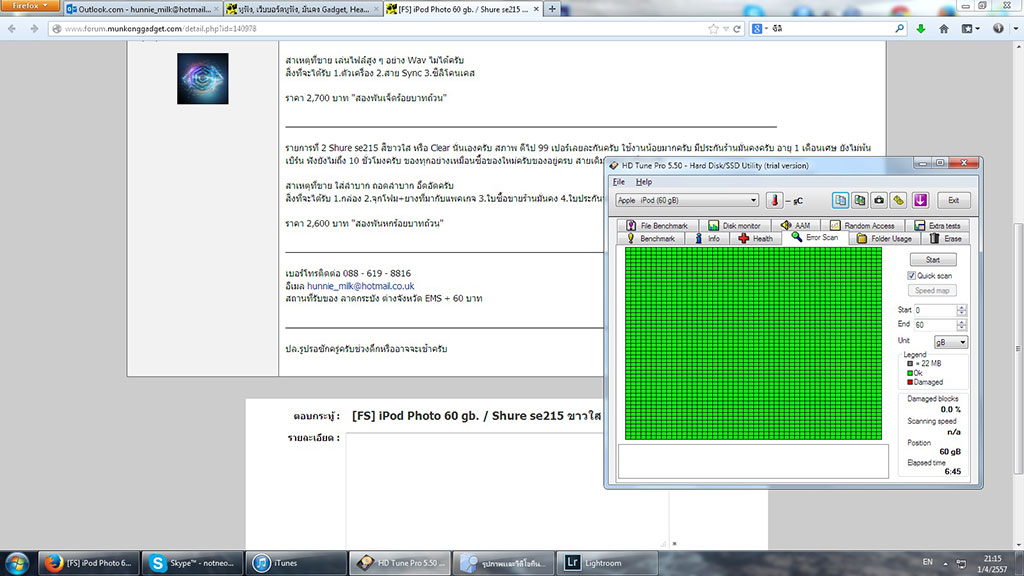 รายการที่ 1 iPod Photo 60 gb. สภาพภายนอกขนแมวรอบตัว ไม่มียุบหรือหบุบ แบตยังอึดครับยังไม่เคยลองครับ น่าจะราว ๆ 6 ชั่วโมงโดยประมาณ HDD ไม่มีแบต