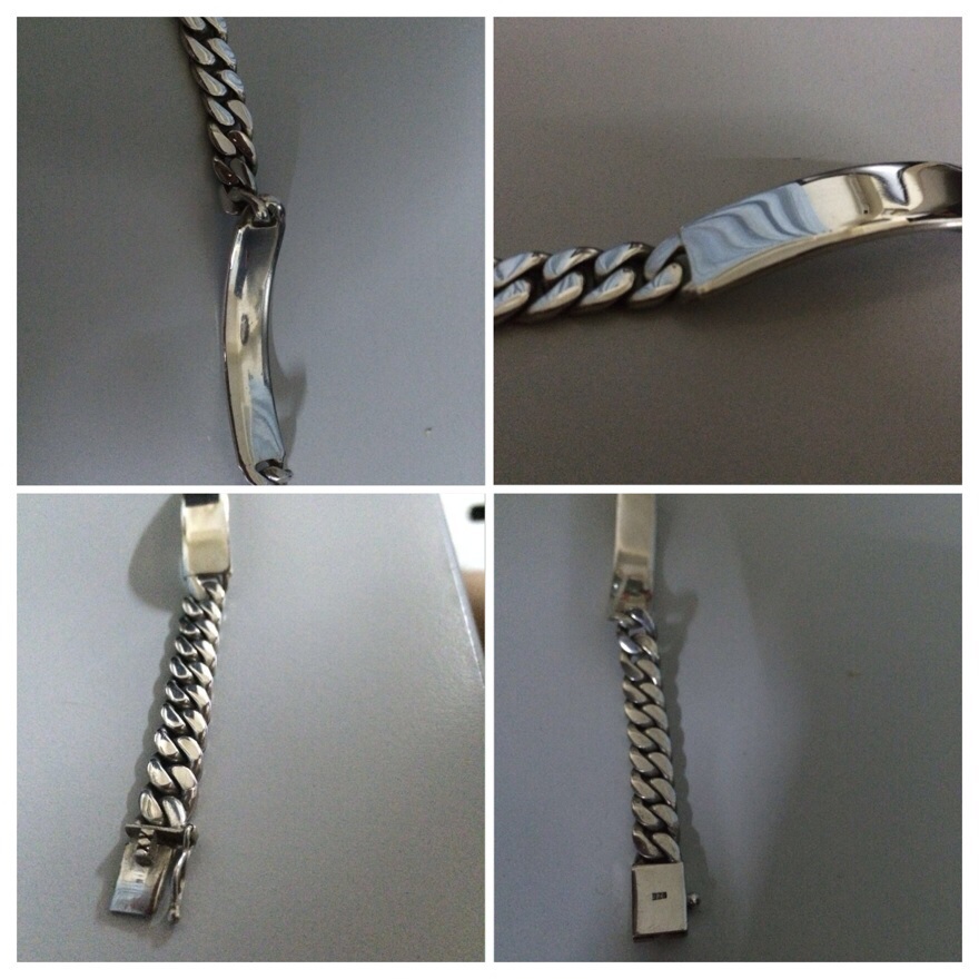 เป็นสร้อยข้อมือเลสเงินแท้ 92.5%ครับ ตัวล็อคเป็นแบบสปริงค์ ยาว7นิ้ว รวมข้อที่เหลืออีก1นิ้วเป็น8นิ้วครับ หน้ากว้าง0.8ซม มีร่อยบ้าง ให้ร้านขัดเงินขัดได้ครับ ขอขายราคา2900ครับ e-mail