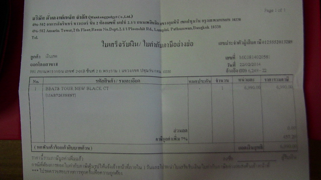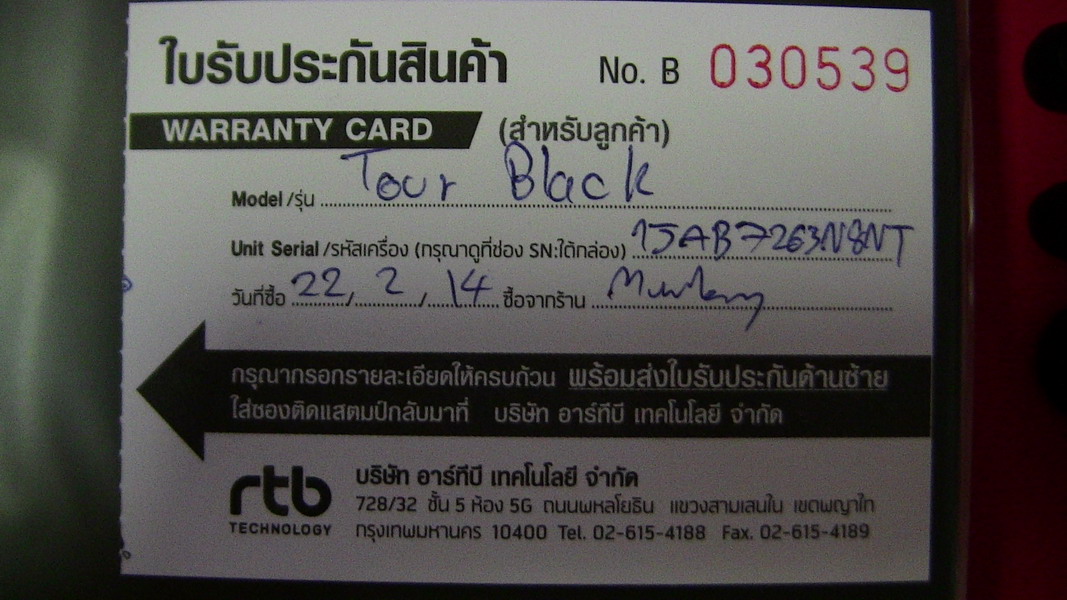 อุปกรณ์ครบ ซื้อมาเมื่อวันที่ 22/02/2557 มีใบเสร็จและใบรับประกัน