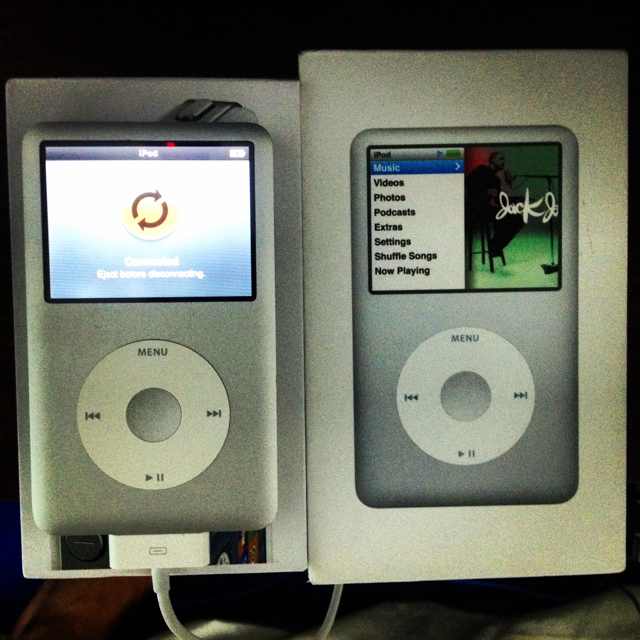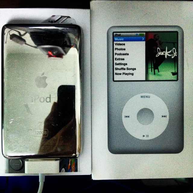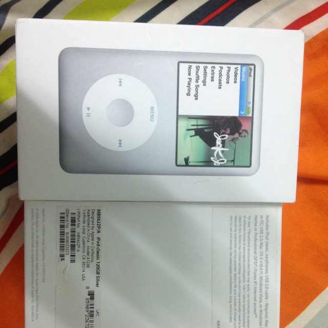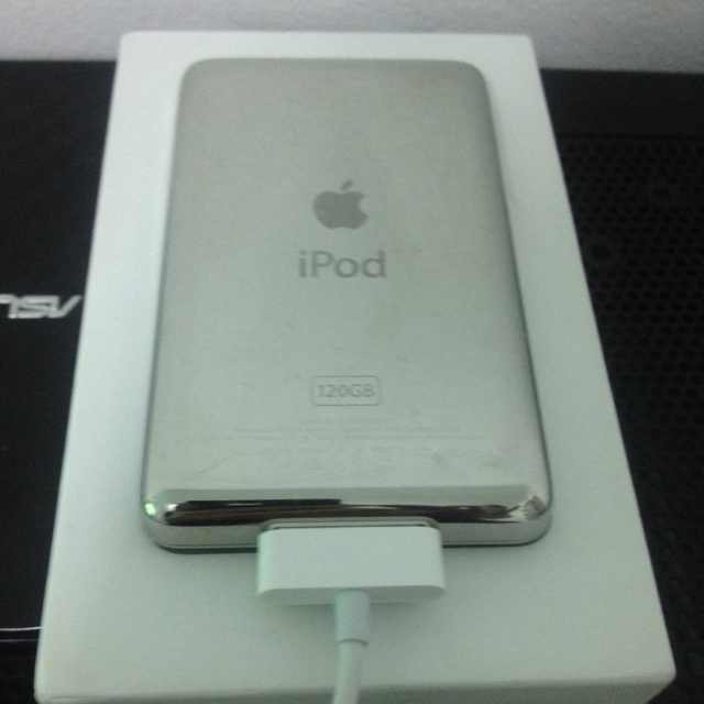 "iPod Classic 120GB สภาพสวย หมดประกัน มีแต่กล่องมา ผมแถมสายชาร์จของไม่แท้ให้ครับ 4000 เท่าที่ซื้อมาจากสา"