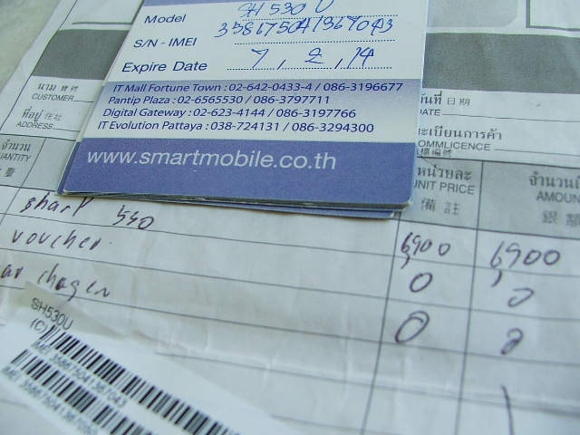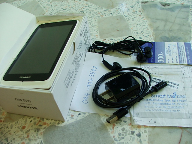 สิ่งที่ได้-มือถือSharp,หม้อแปลงSharp,สาย USB, หูฟังSharp-small talk,กล่อง,ใบเสร็จsmart mobile