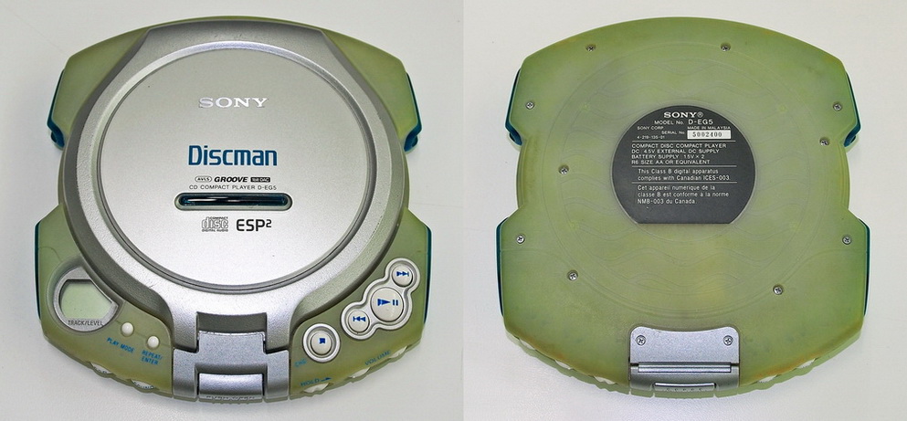 5.Sony Discman D-EG5 เป็นเครื่องเล่นแบบ Sport มีระบบกันสะเทือนESP2 และตัวเครื่องหุ้มยางกันกระแทก ฝาปิดล็อก2ชั้น กึ่งกันนำ้ ขายราคา 700 บาทครับ