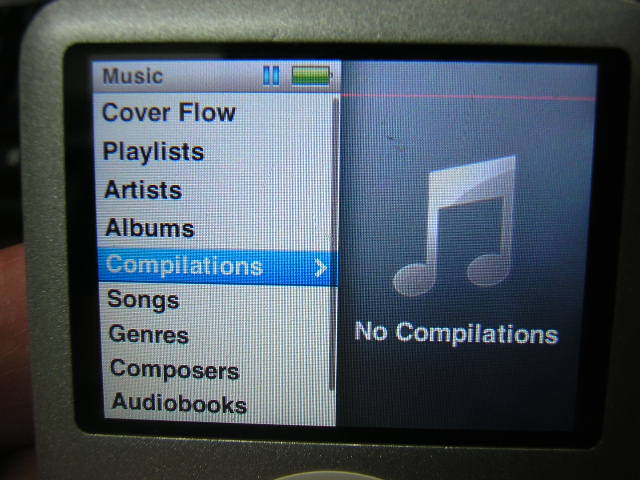 - iPod Nano Gen3 4g สีเทา หน้าจอมีเส้น 1ขีดตามรูป กับ ถ้าเสียบหูฟังจะเสียงไม่เท่ากัน แต่ถ้าต่อผ่าน USB ปกติ เหมาะสำหรับ ต่อ Dock หรือ ฟังในรถที่ต่อ USB ขาย 900