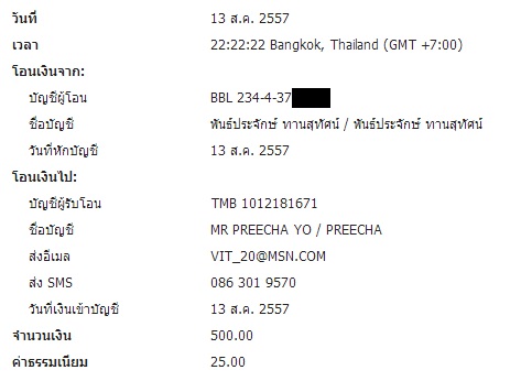 โอนให้แล้วนะครับ เดี๋ยวที่อยู่ผมส่งให้ทาง sms นะ ส่งของแล้วช่วยแจ้งเลข ems ส่งให้ผมทาง sms ด้วยนะครับ