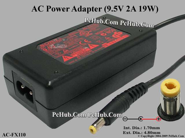 9.5V 2A 19W, Round Barrel (1.7/4.8mm), 2-prong AC-FX110
