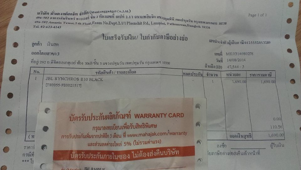 พยายามโพสรูป แต่โพสไม่ได้ จะโพสใบรับประกัน ซื้อที่ร้านมั่นคง สาขาดิจิติลเกตเวย์ สยาม เมื่อ 14/8/2014