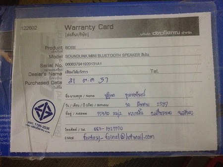 ระยะประกัน : 11เดือนกว่า(เพิ่งซื้อเมื่อ 31 ต.8. 2557 )