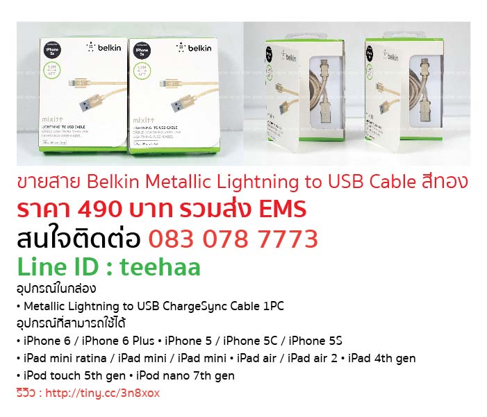 ขายสาย Belkin Metallic Lightning to USB Cable สีทอง มีมา 3 ชุดครับ