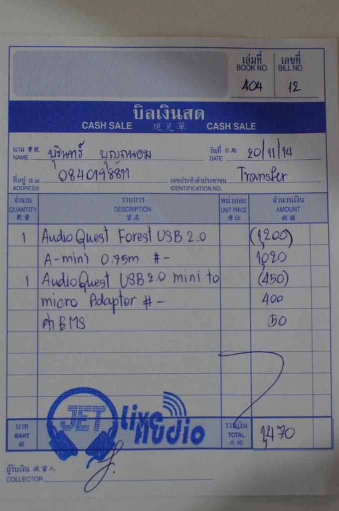 2. สาย USB ยี่ห้อ AudioQuest รุ่น Forest เป็นสาย USB A to mini ยาว 0.75 เมตร ขาย 900 บาท