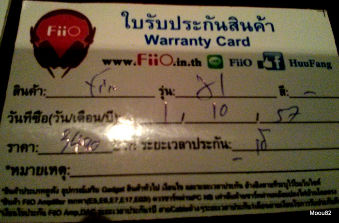 ซื้อมาวันที่ 01/10/2014 ประกันศูนย์ Fiio 1 ปีครับ ยังเหลืออีก 10 เดือนกว่าๆ สาเหตุที่ขายเนื่องจากไม่ค่อยได้ใช้งานครับ ปกติผมจะใช้ตัว X5 มากกว่าครับ ถ้าเริ่มมองหา Player ดีๆซักตัวในงบประมาณเท่านี้ ผมขอแนะนำตัวนี้เลยครับ รับรองกินขาดตัวอื่นๆในราคาเท่านี้ทุกตัว