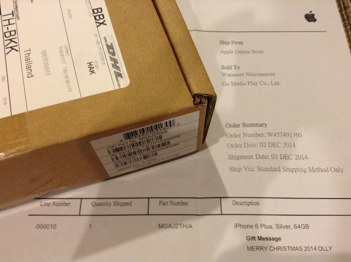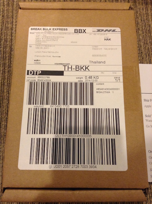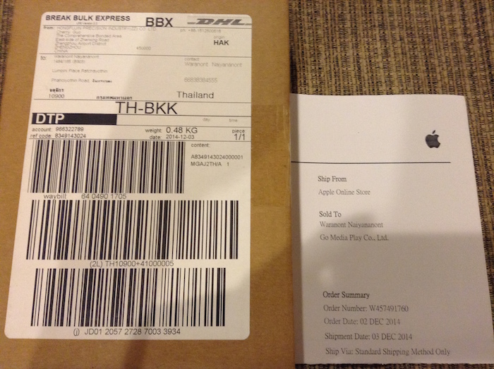 - เครื่องส่งจาก Apple โดย DHL ถึงผู้รับเมื่อวันที่ 9 ธ.ค.57