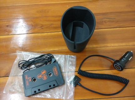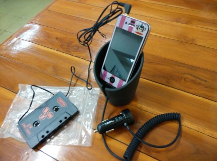 2. ชุดชาร์ตiphoneบนรถของ Griffin ประกอบไปด้วย ตัวชาร์ตเสียบที่จุดบุหรี่ แท่นวางไอโฟน(วางตามรูป) และเทปไบ้ไว้เสียบเข้าเครื่องเล่นเทปในรถ ครับ มีริ้วรอยนิดหน่อย แต่ใช้งานได้ปกติ อันนี้ซื้อมือหนึ่งมาใช้ครับ ชุดนี้ผมขอขาย 280 บาทครับ