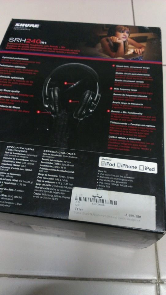 ขายหูฟัง SHURE รุ่น SRH240m+ มี