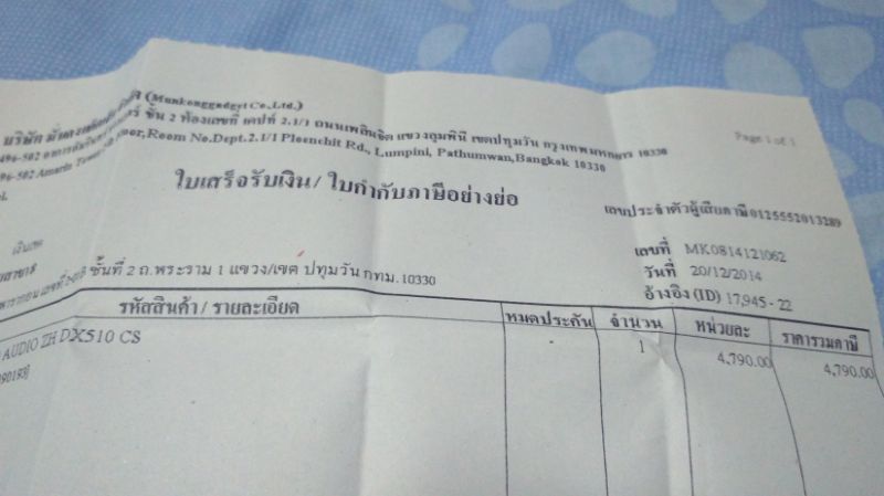 รายการที่ 2 หูฟัง Zero Audio Singolo ซื้อมาจากร้านเฮียมั่น เมื่อวันที่ 20/12/57 ประกันเหลืออีกเยอะ อุปกรณ์ครบ