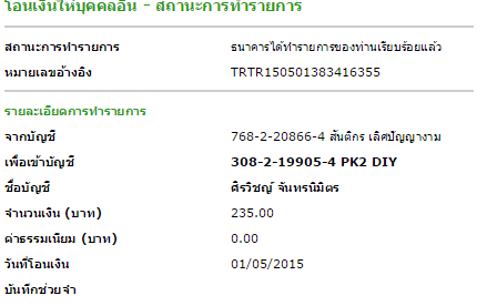 โอนแล้วครับ ส่ง sms กลับไปแล้วถ้าไม่ได้รับsms หรือยังไงรบกวนบอกด้วยนะครับ ^^