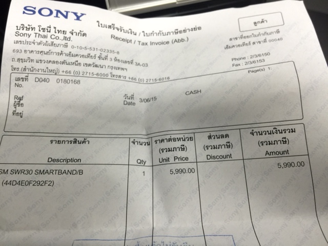 ขาย Sony Smartband Talk SWR30 เพิ่งซื้อมาวันที่ 3/6/58