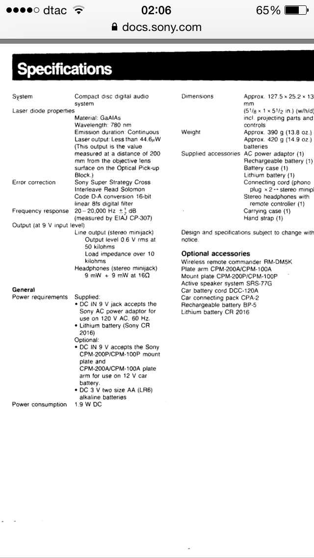 - อุปกรณ์มี ตัวเครื่อง รางถ่าน อแดปเตอร์ 9v ของโซนี่ กระเป๋าหนังใส่ดิสแมนของโซนี่ครับ