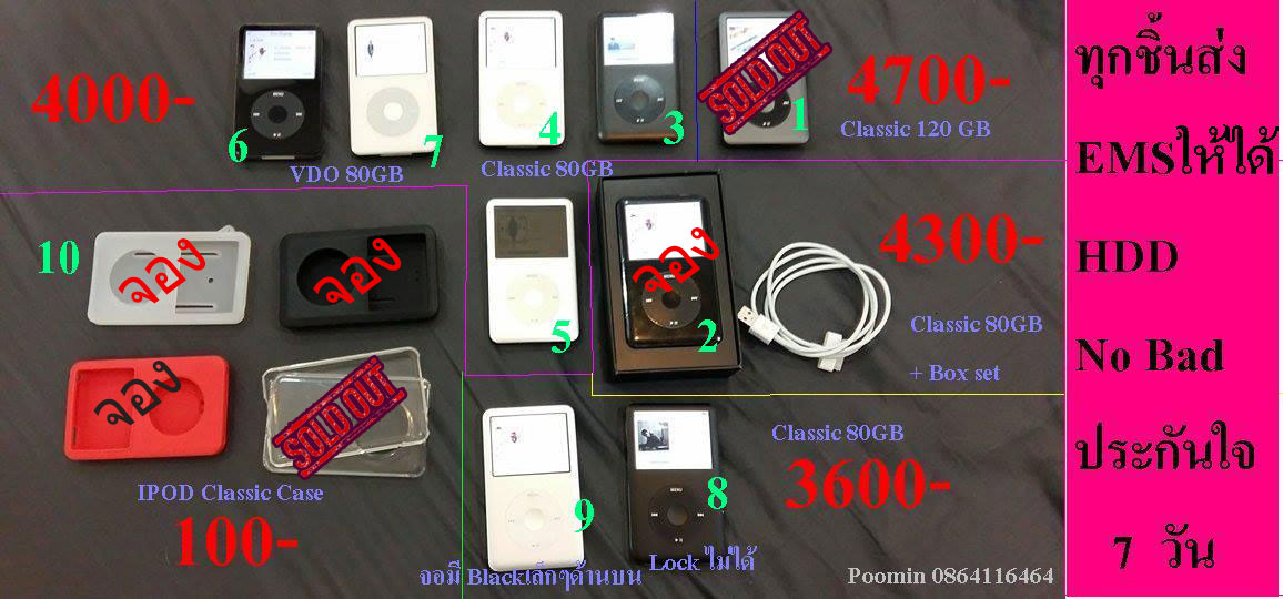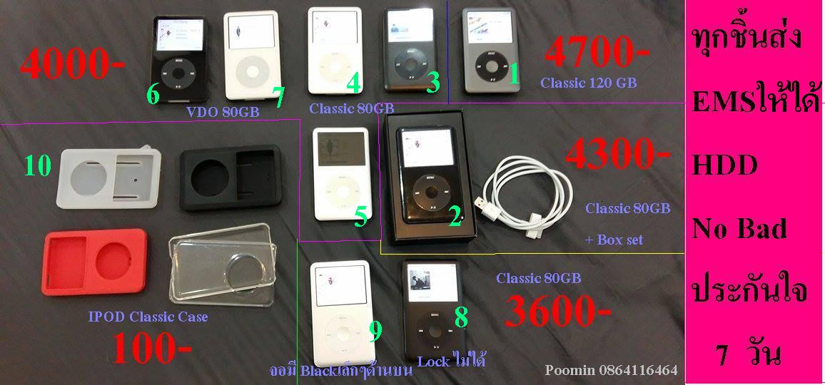 8. IPOD Classic 80gb สีดำ สภาพสวยๆ 90% ติดฟิล์มใสด้านหลัง ราคา 3,600- (ส่ง EMS+50) สายSync **แต่ปุ่ม Lock ใช้ใม่ได้ ค่าซ่อม 200-300 บาท