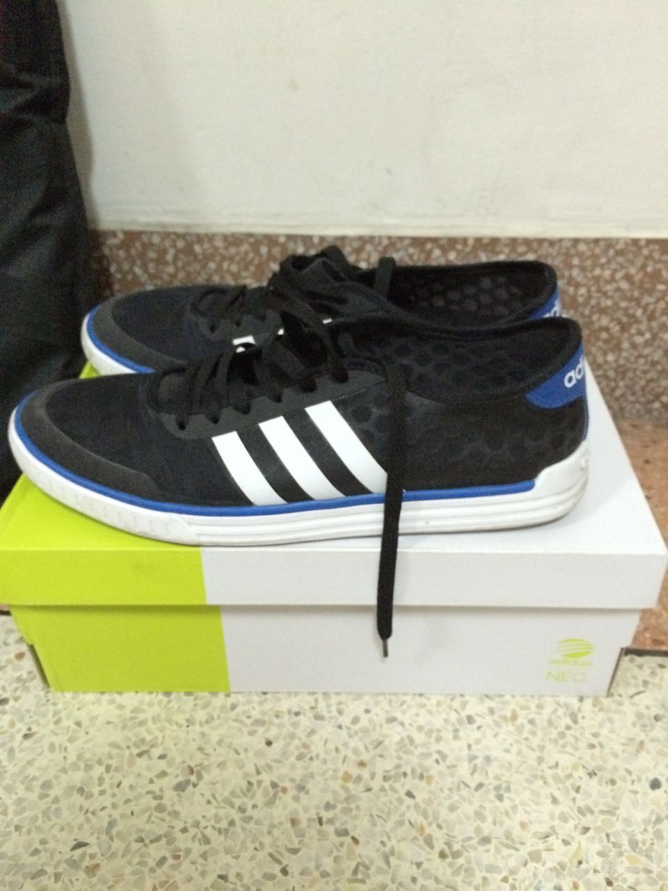 รองเท้าผ้าใบ Adidas NEO สีดำ เบอร์ 9 UK (9.5 US) ราคา 800 บาท ถูกๆครับ มีตำหนินิดหน่อยตรงหัวเท้าข้างซ้าย ดีไซน์สวย เท่ สามารถใส่เที่ยว หรือออกกำลังกายได้ครับ ของเเท้ 100% เเน่นอนครับ เเต่ไม่มีใบเสร็จเเล้วครับ ราคารวม EMS เเล้วครับ สนใจติดต่อมาได้เลยครับที่