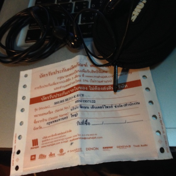 ขายหูฟัง Shure SE215 สภาพใหม่กริ๊บครับ ซื้อมาเมื่อต้นเดือนกรกฏาคมแต่ใส่หูไปไม่ถึงสิบครั้ง เบิร์นไปแล้วราวๆ 20 ชั่วโมง กล่อง ใบรับประกันอยู่ครบครับ ยังไม่ได้ Register สินค้ากับทางเวปของ Shure เลยครับ