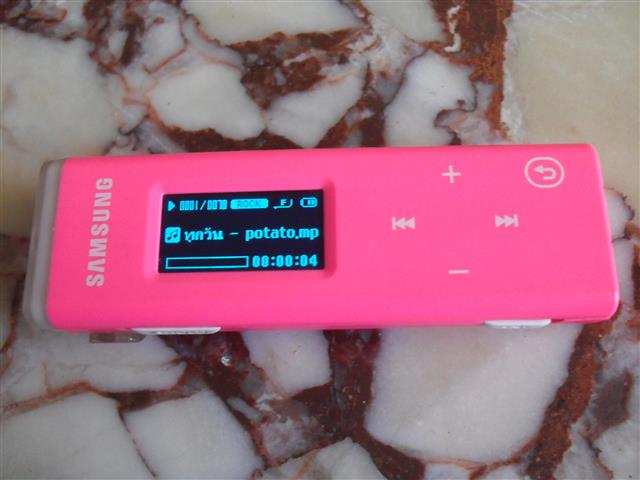 MP3 samsung 1GB สีชมพู เครื่องใช้งานได้ปรกติ แบตเก็บไฟดีครับ มีรอยขนแมวทั่วไป ขาย 300 บาท