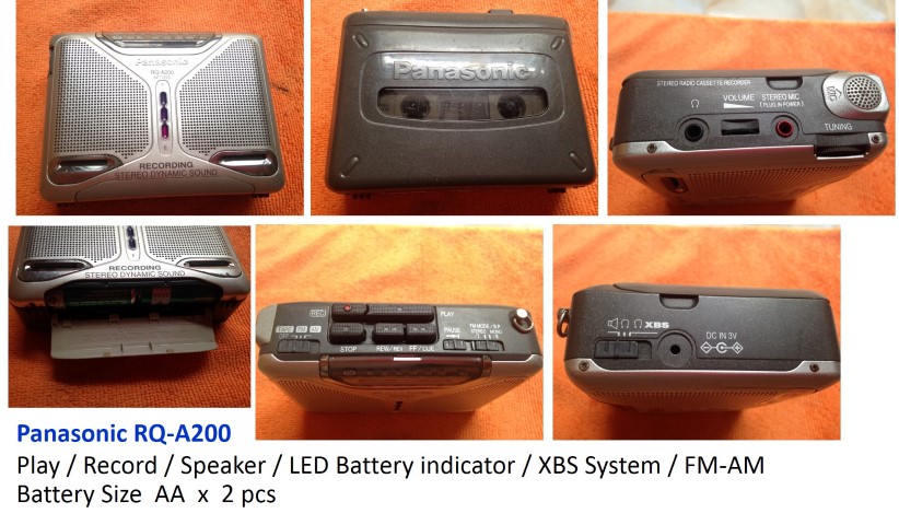 เครื่องเล่นเทปพกพา Panasonic RQ-A200 มีรอยตามการใช้งานตามรูป เล่นเทปปกติครับ สามารถบันทึกเทปได้ มีลำโพงในตัว