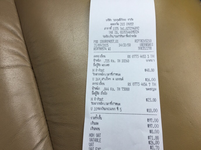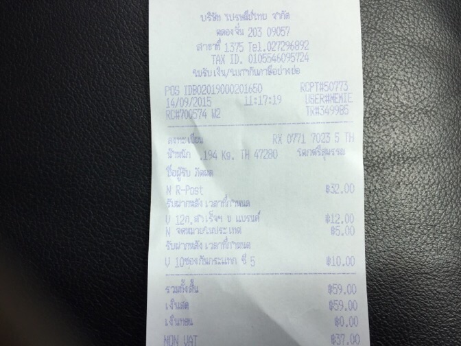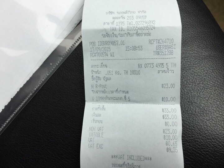 รายการที่ยังไม่รวมส่ง ถ้าส่ง ems 50 ลงทะเบียน 30