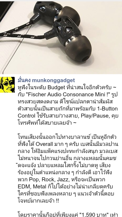 ขออนุญาตขาย อินเอียร์ FISCHER AUDIO CONSONANCE MINI
