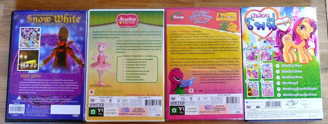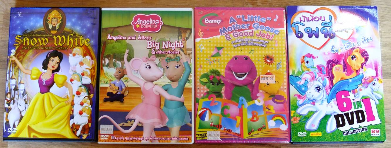 4. DVD การ์ตูน สำหรับเด็ก ๆ สภาพดี (บาร์นี่ยังอยู่ในซีล) ขายรวม 4 ชุด 220 บาท รวมส่งลงทะเบียน
