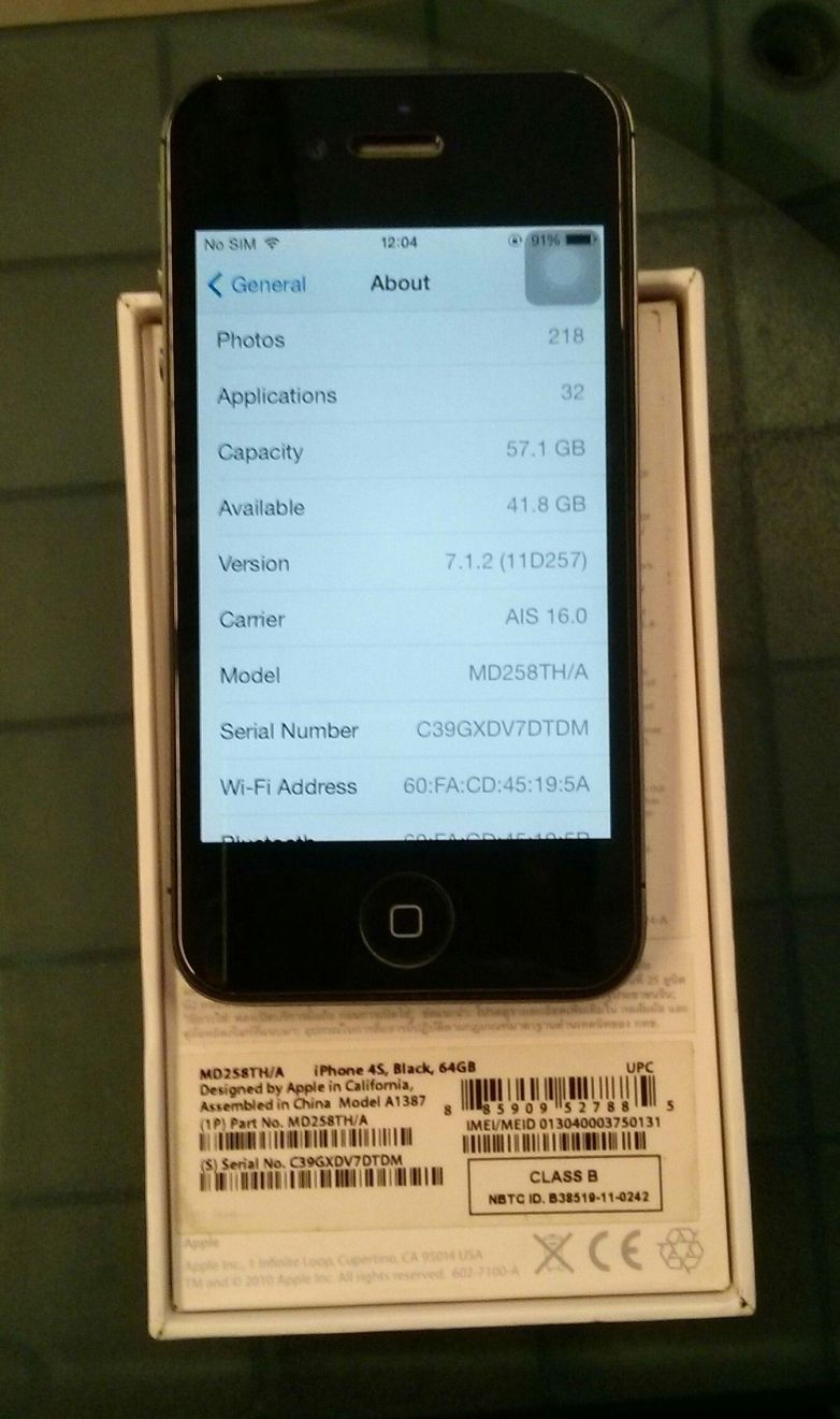 ขาย Iphone4s 64G สีดำ สภาพดีมาก พร้อมกล่อง