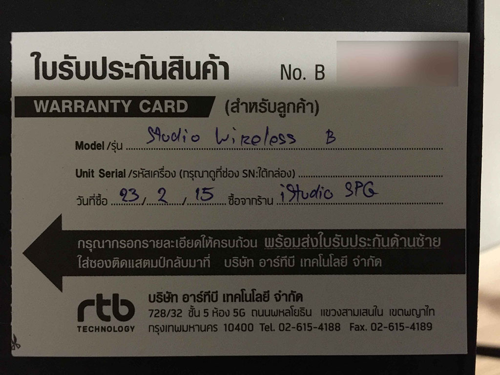 [ตั้งใหม่] ขาย Beats Studio Wireless แท้ 100% ประกัน RTB สภาพใหม่อุปกรณ์ครบกล่อง ประกันยังเหลือ 10,000 บาท