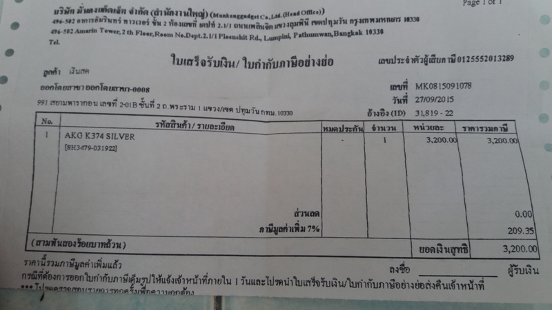 ขาย หูฟัง IN EAR AKG K374 SILVER กล่อง ใบเสร็จ จุกยาง อยู่ครบ ใช้งานได้ปกติ ซื้อมา วันที่ 27/09/58 จากมั่นคง