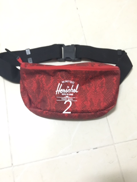 2. กระเป๋าคาดเอว หรือพ่ายไหล่ ยี่ห้อ Herschel สีแดง รุ่น red snake sixteen hip pack เป็นกระเป๋าช่องเดียวโล่งๆผ้าคล้ายๆผ้าเต็น
