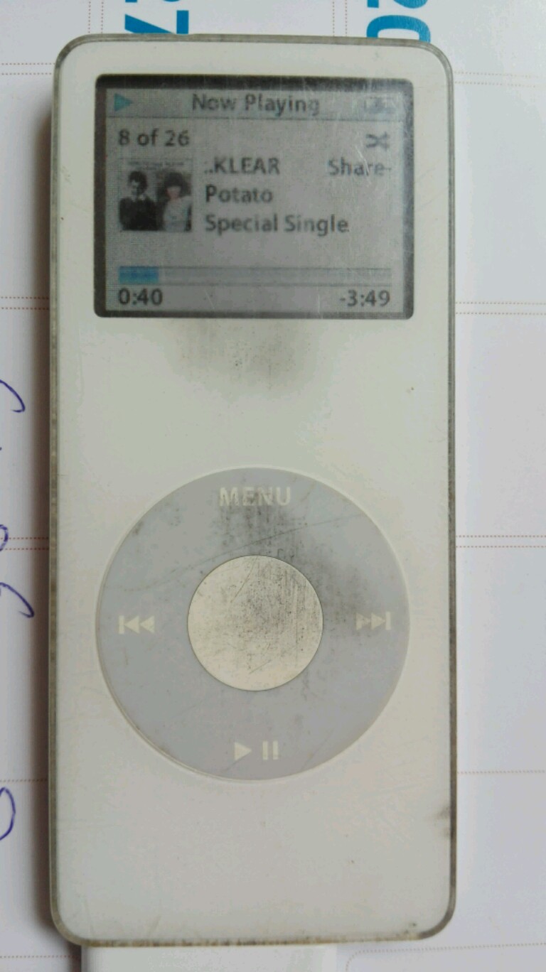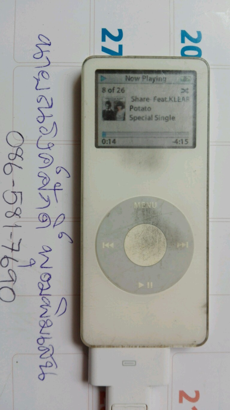ขายipod nano gen1 2g. สภาพไม่สวยมีรอย แบตเสื่อมไม่เก็บไฟ serialฝาหลังตรงกับเครื่อง เล่นและฟังได้ปกติทุกปุ่ม เครื่องไม่มีรอยแงะและแกะ ราคา1600฿พร้อมส่งems. 086-581-7690