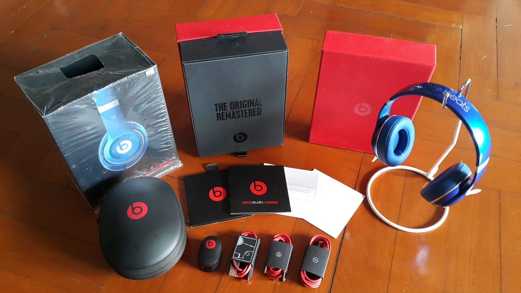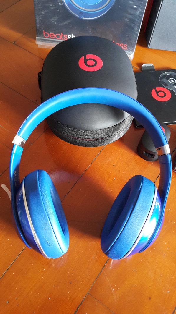 หูฟัง Beats (Studio) Wireless ครับ อุปกรณ์ครบตามรูปเลยครับ สีน้ำเงินครับ สภาพที่ตัวหูกริ๊ปๆครับ Padหูฟังมีรอยถลอกจากการโดนสายเกี่ยวนิดหน่อยครับ หูฟังตัวนี้เป็นของแท้แน่นอนครับ ต้องการดูรูปเพิ่มเติม Line มาได้เลยครับ