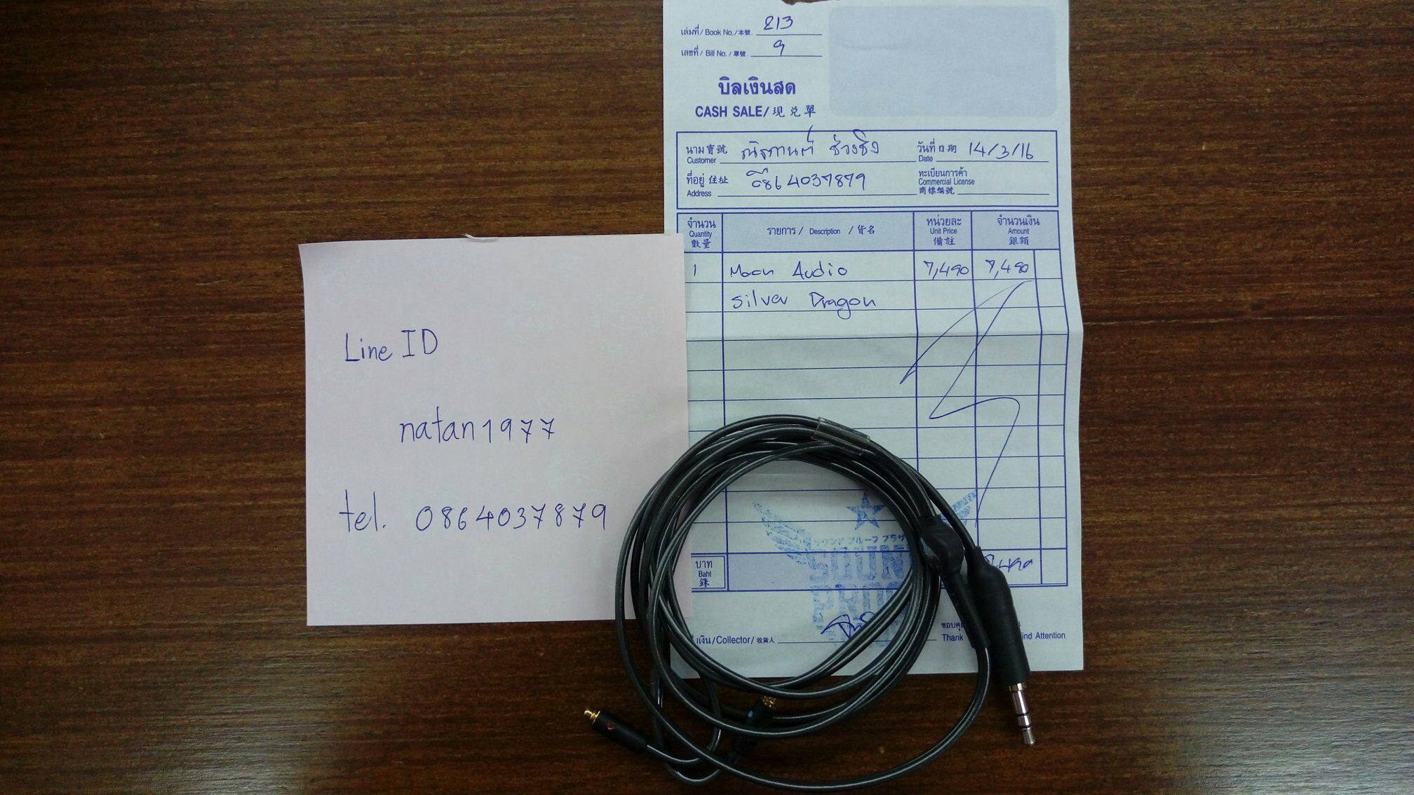ขายสายอัพเกรดหูฟัง silver dragon ขั้ว mmcx สภาพเหมือนใหม่ ซื้อ 14 มีนาคม 2559 ประกันเหลือๆ ขั้วและสายไม่มีปัญหาอะไร ใช้งานได้ปกติ ไปโดน widow มาเลยต้องปล่อย ราคา 6,500 บาท รวม ems แล้ว นัดรับ หลักสี่ รังสิต ราคาต่อรองได้ครับ