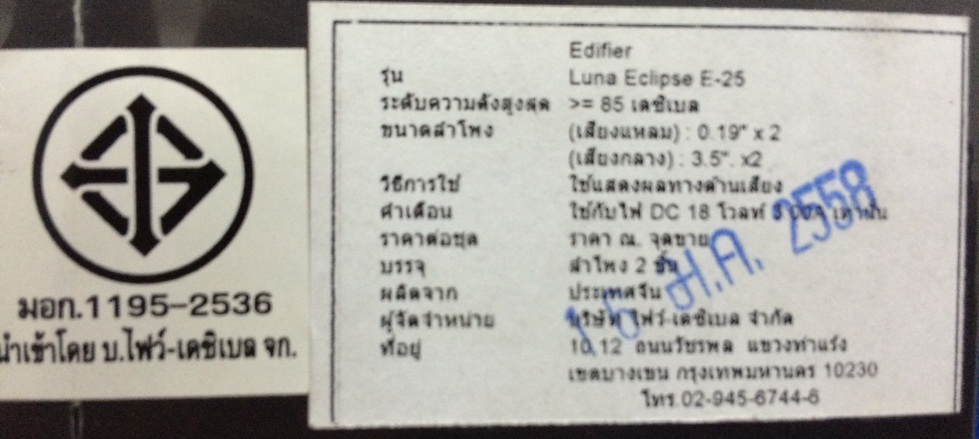 ขายลำโพงEdifier Luna Eclipse e25 ใหม่ซิลกล่องประกัน2ปีจากปิยะนัส ซื้อมาราคา6900+200ค่าส่ง พอดีเพื่อนที่ฝากซื้อไม่เอา เลยเหลือ1ชุด หักเงินค่ามัดจำจากเพื่อนมาเป็นส่วนลด500บาทครับ ขอขายที่ราคา 6600บาทครับ รายละเอียดดูตามรูปได้เลยครับ สนใจติดต่อ 087-6350444 หรือ 042-990966 กีรติครับ ส่งEMSฟรี นะครับ ผมอยู่หนองคาย เช็คประวัติซื้อขายได้ที่ KWongsawan นะครับ