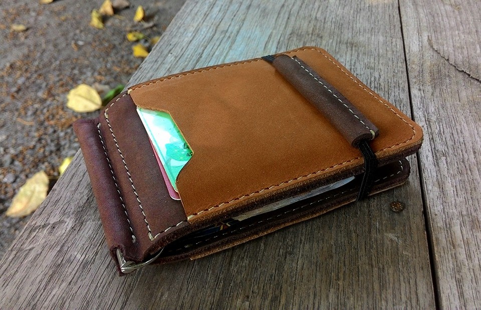 กระเป๋าสตางค์หนังแท้ Wallet Money Clip สีแทน + น้ำตาลเข้ม ทำจากหนังวัวแท้(นูบัค)