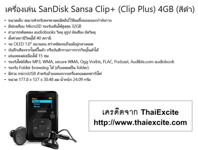 รายการที่ 2. Sansa Clip+ 4G เพิ่มเมมได้ สภาพค่อนข้างใหม่เก็บซะมากกว่า แบตนาน